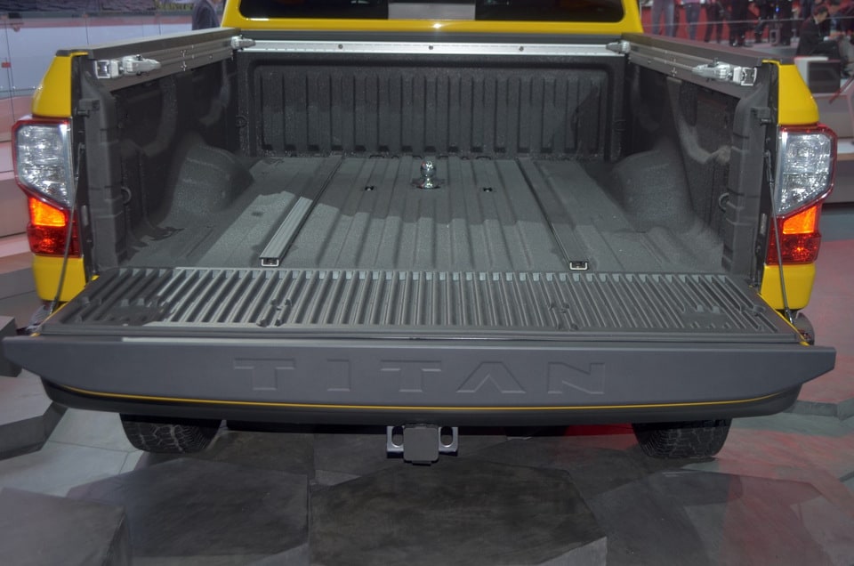 Other TITAN XD bed features include the popular spray-on bedliner, flush-mounted LED bedrail lighting, cargo and tailgate lamps, 120-volt in-bed access and a damped tailgate that is light to lift and smoothly damped when lowering.